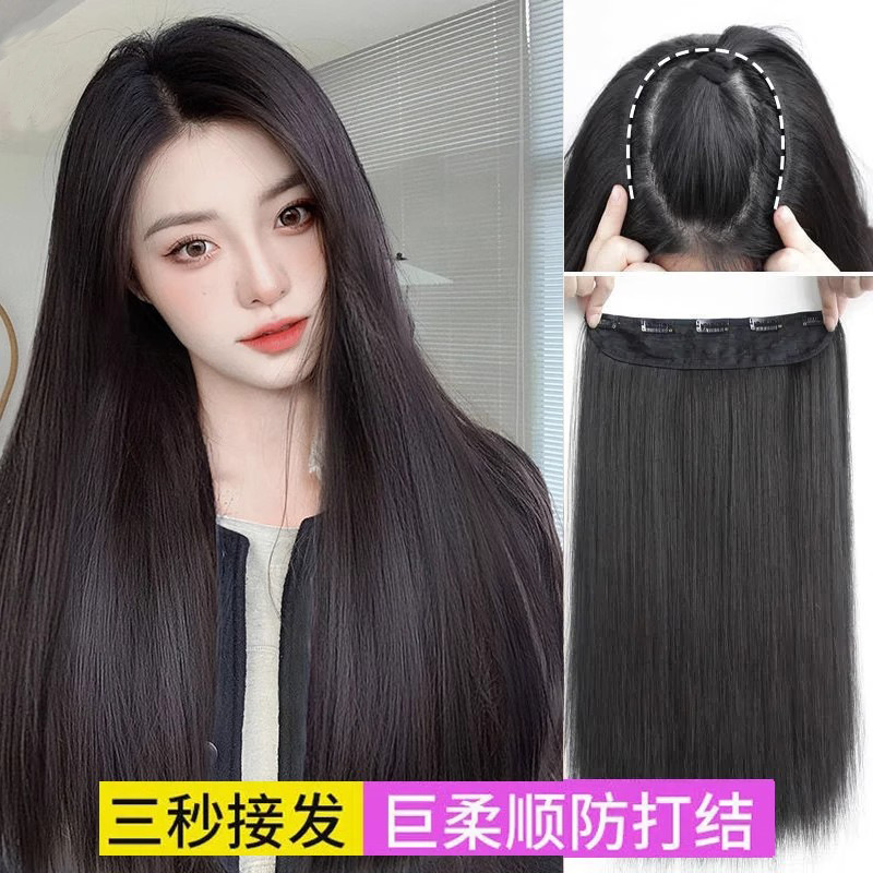 かつらの女性の長い髪の一枚のu型のシミュレーションの髪はふわふわしていて、目に見えないです。