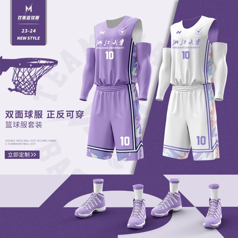 新款双面篮球服套装男定制村BA正反两面穿球衣训练比赛团队服订制