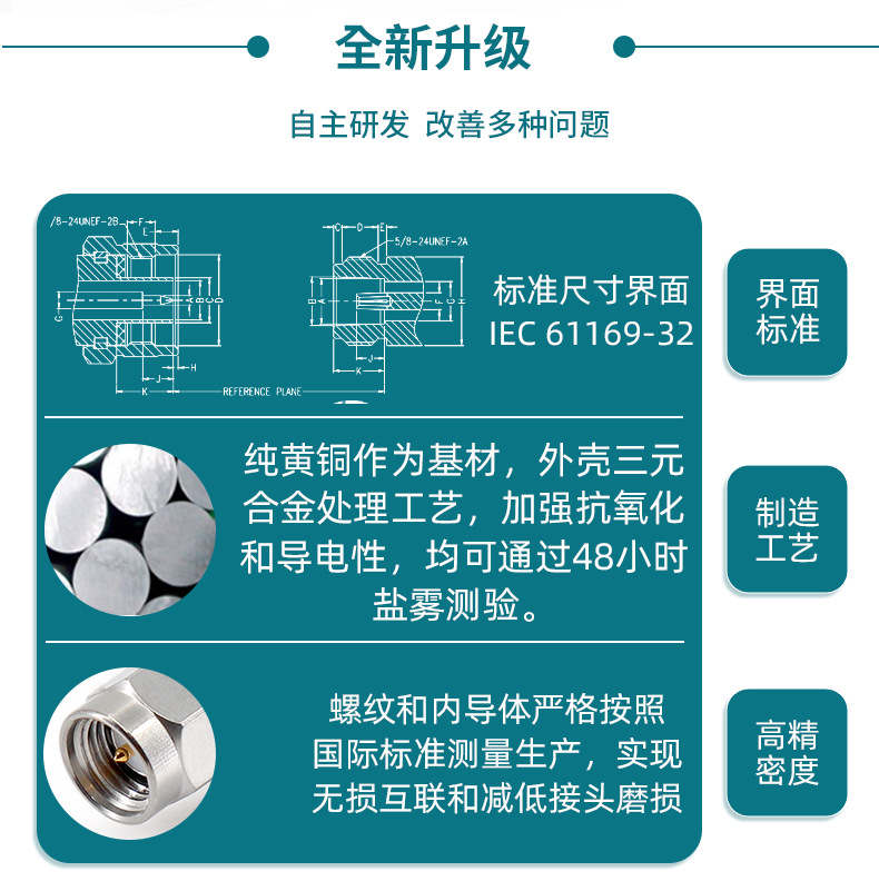 XINQY 8GHz-18GHz 高周波 50Ω インピーダンス SMA RF アダプター 真鍮金メッキ 5G テスト