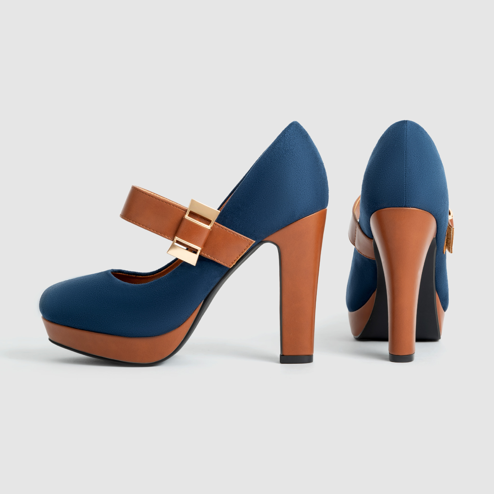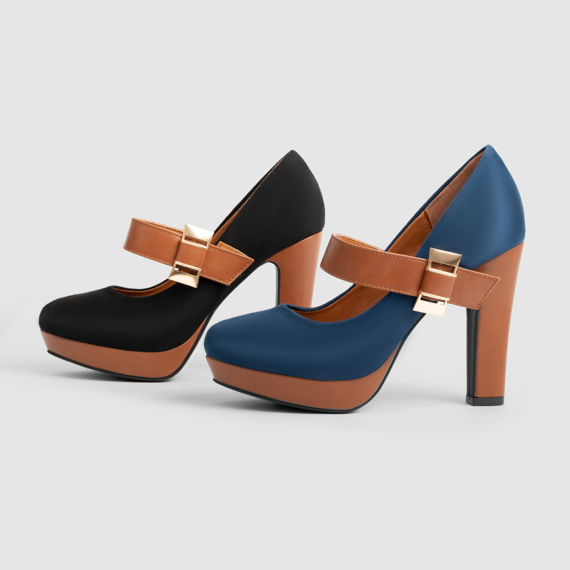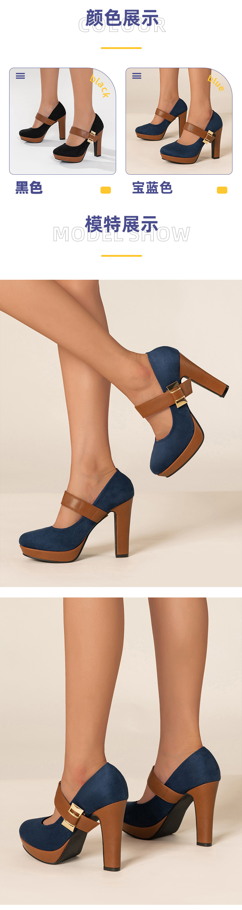 ミシン糸,カラースプライシング,太いヒール,防水プラットフォーム,カラーブロック,ベルトのバックル