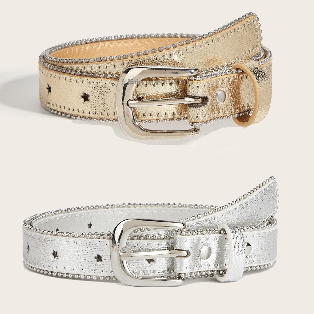 国境を越えて人気の高い金色の星穴飾り付き子供・大人用ベルト、スカートに合わせたビーズ装飾ベルト、工場直販