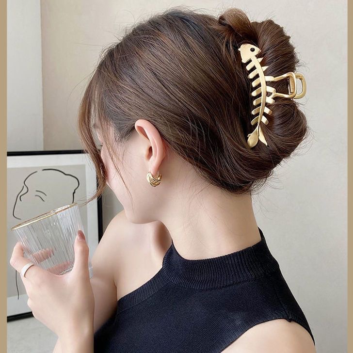 鱼骨发夹女秋季后脑勺夹子头饰金属发卡网红2025年新款发抓鲨鱼夹