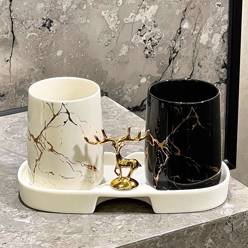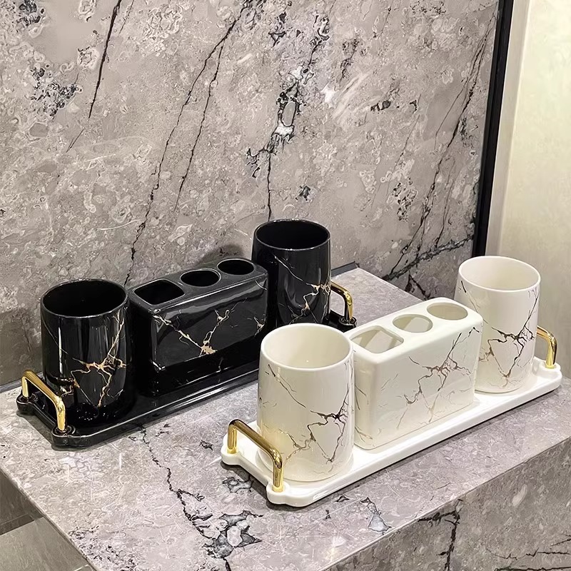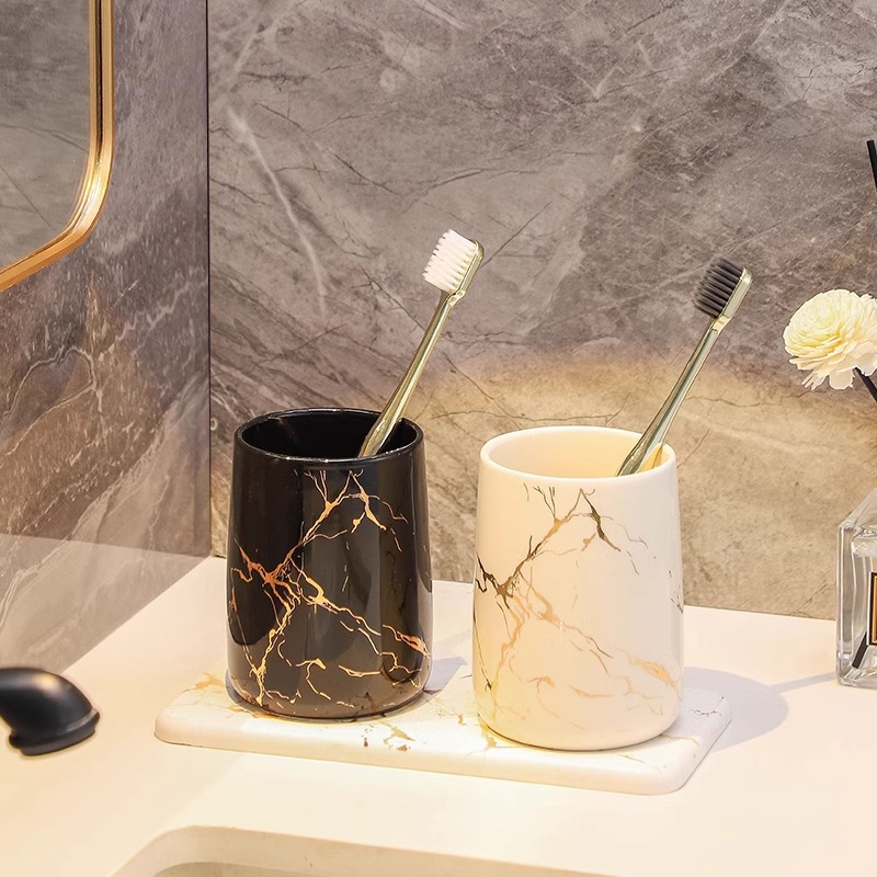 創意大理石金紋洗面カップ民宿家庭用浴室カップル陶磁器洗面カップ珪藻泥セット