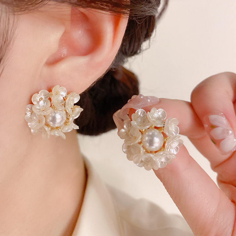 韓国版新型ファッション貝殻花耳飾り銀針イヤリング超仙白色ピアス
