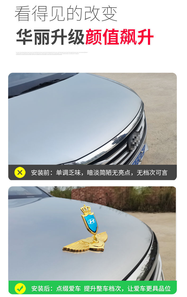 3d立体金属車は翼を貼って、タカの車の頭のカバーの個性の立標は車の標識の前の顔を改造して車の標識を飾ります。