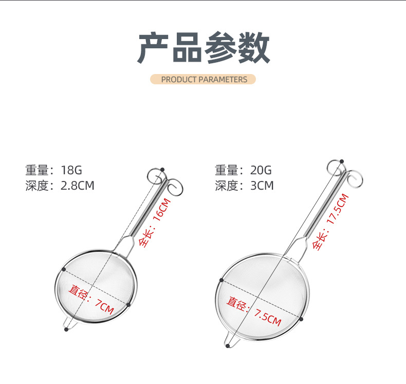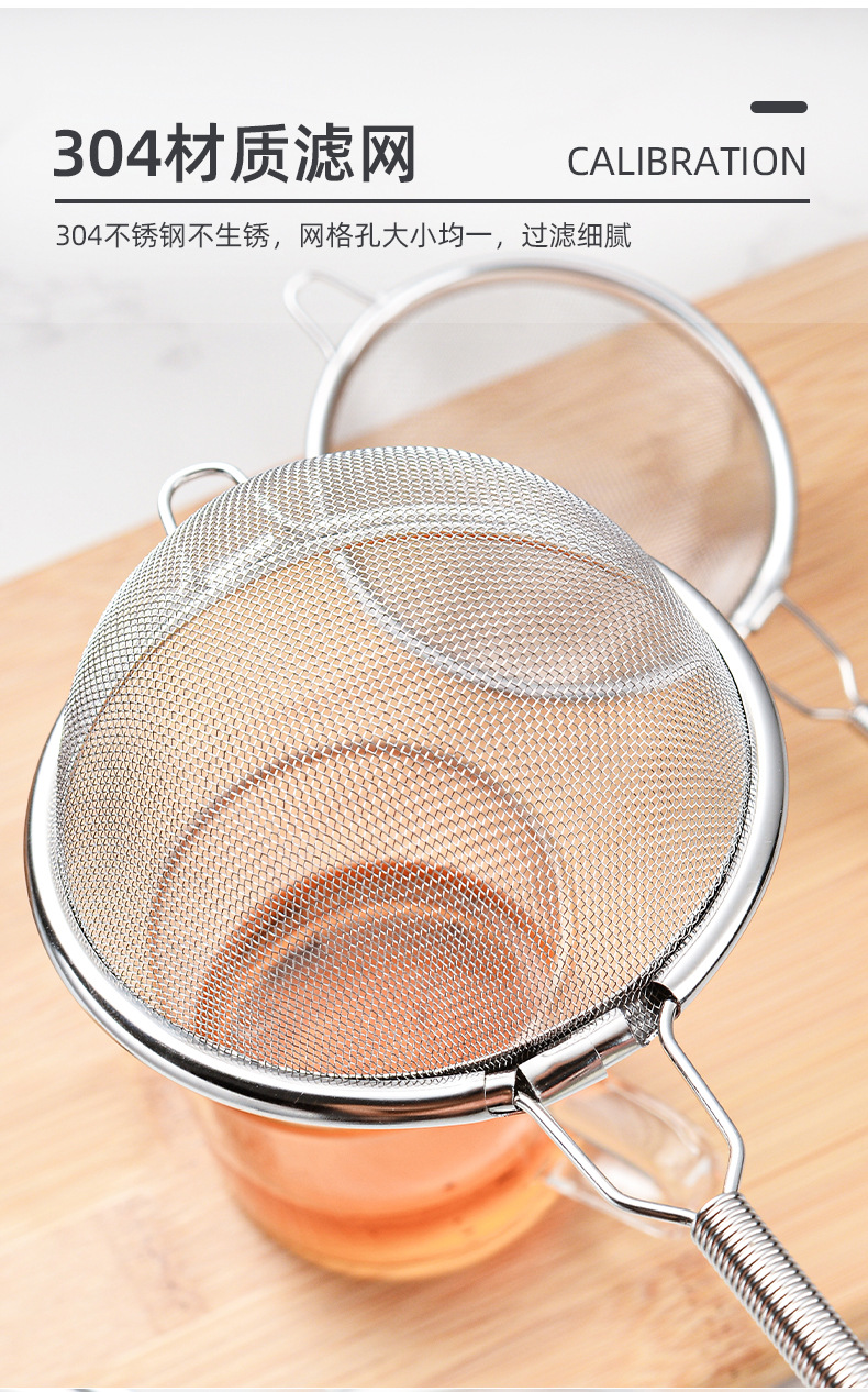 304不锈钢面粉筛 跨境榉木柄果汁豆浆药渣泡沫过滤细网漏茶漏
