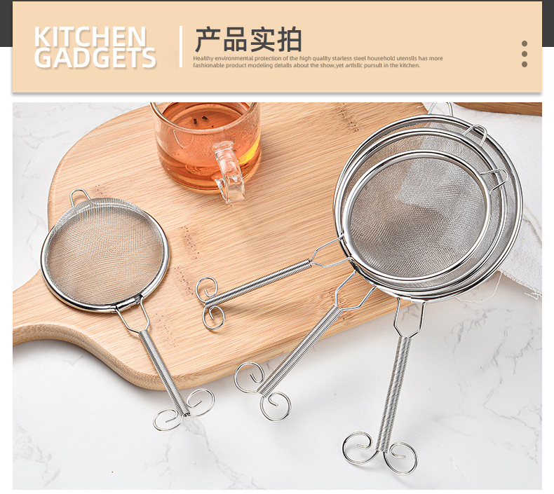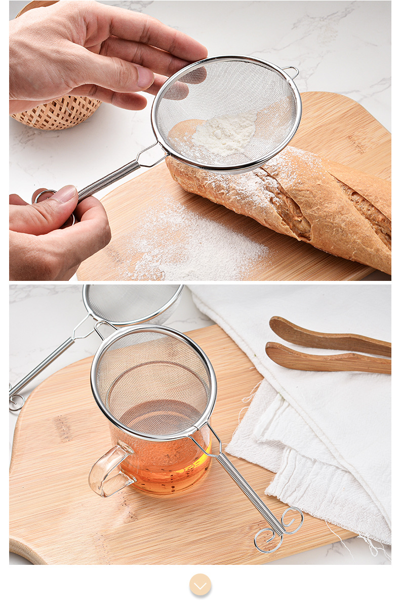 家庭用キッチン豆乳フィルターふるい抹茶砂糖粉末ふるい 304 ステンレス鋼小麦粉ふるいファインメッシュベーキングツール