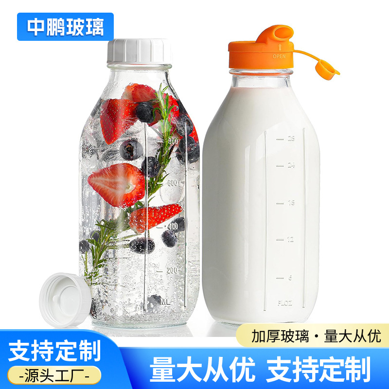 带刻度方形玻璃牛奶瓶果汁瓶家用酸奶分装瓶密封奶茶瓶透明饮料瓶