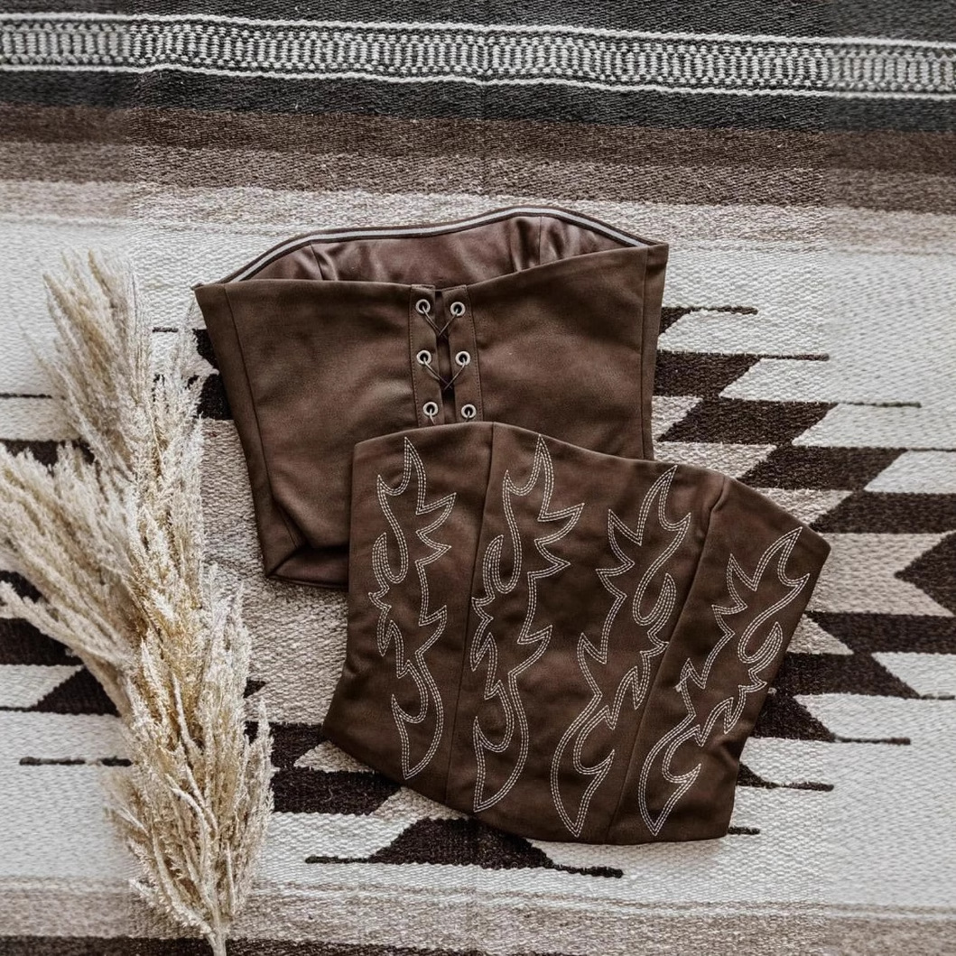 2025欧米の婦人服独立駅のアマゾンの茶色のデジタルプリントのベストの上着は胸のひもを巻いています。
