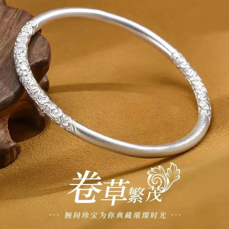新しいセイコー厚いシルバー巻き草パターンバウヒニアフラワーブレスレット女性のためのニッチ古代つや消しファッションブレスレットガールフレンドへのギフト