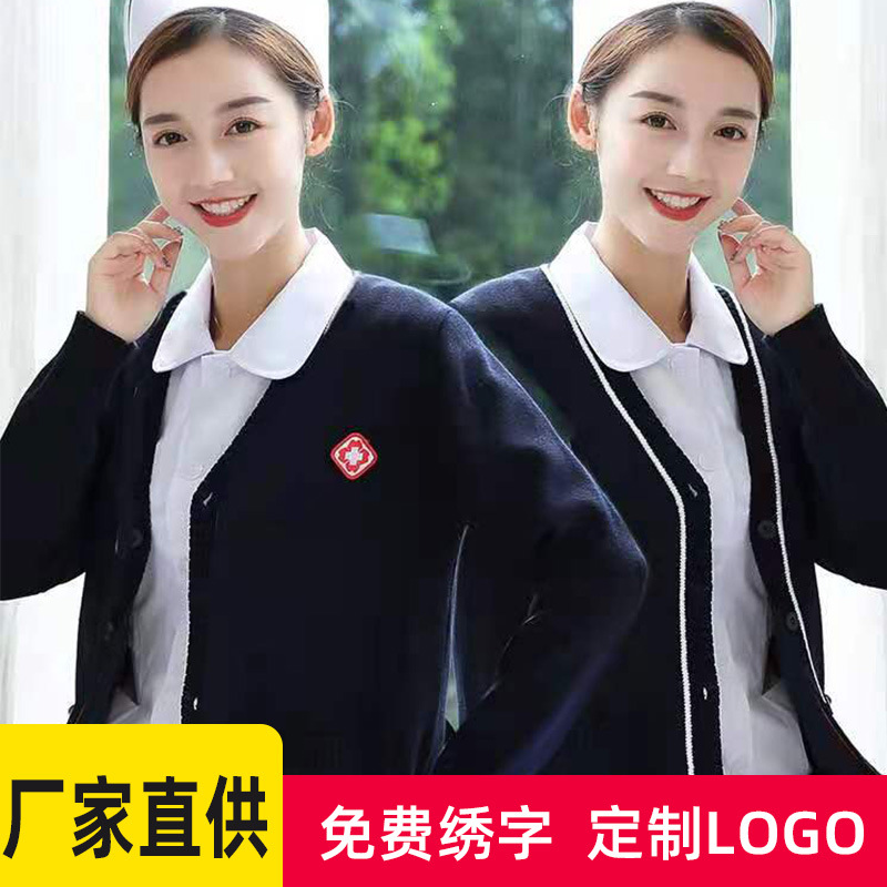 护士毛衣外套开衫v领藏蓝色加绒加厚保暖护士服针织毛衫可外穿
