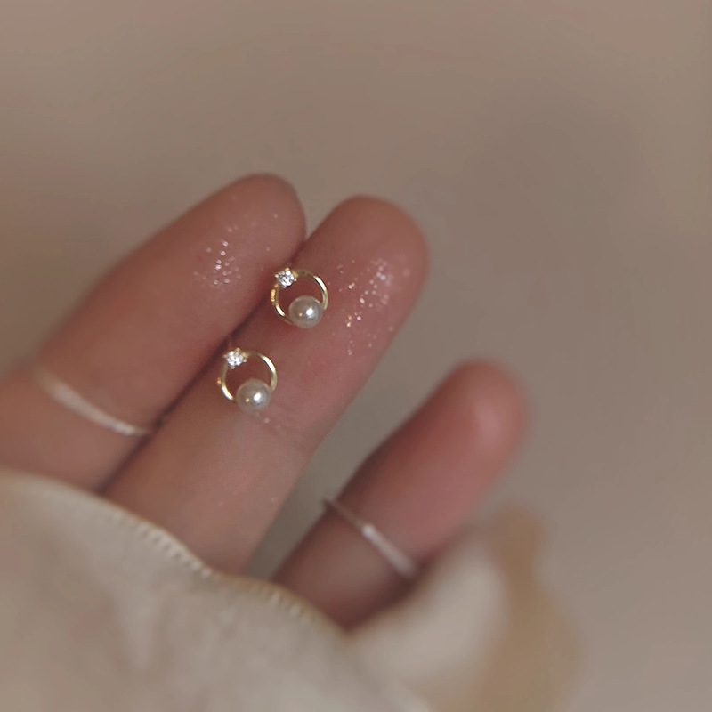 真珠の透かし彫りの小さい円のピアスの女性の項の韓系の幾何学の小さい大衆のシンプルな個性の気質の通勤のジルコンの耳飾り