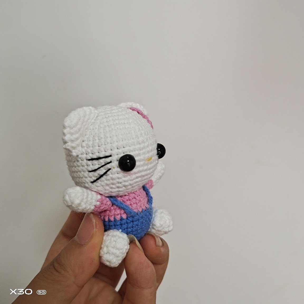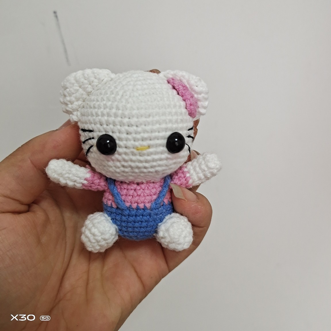 完成した手作りかぎ針編みウール人形猫バッグペンダントキーホルダーペンダント人形