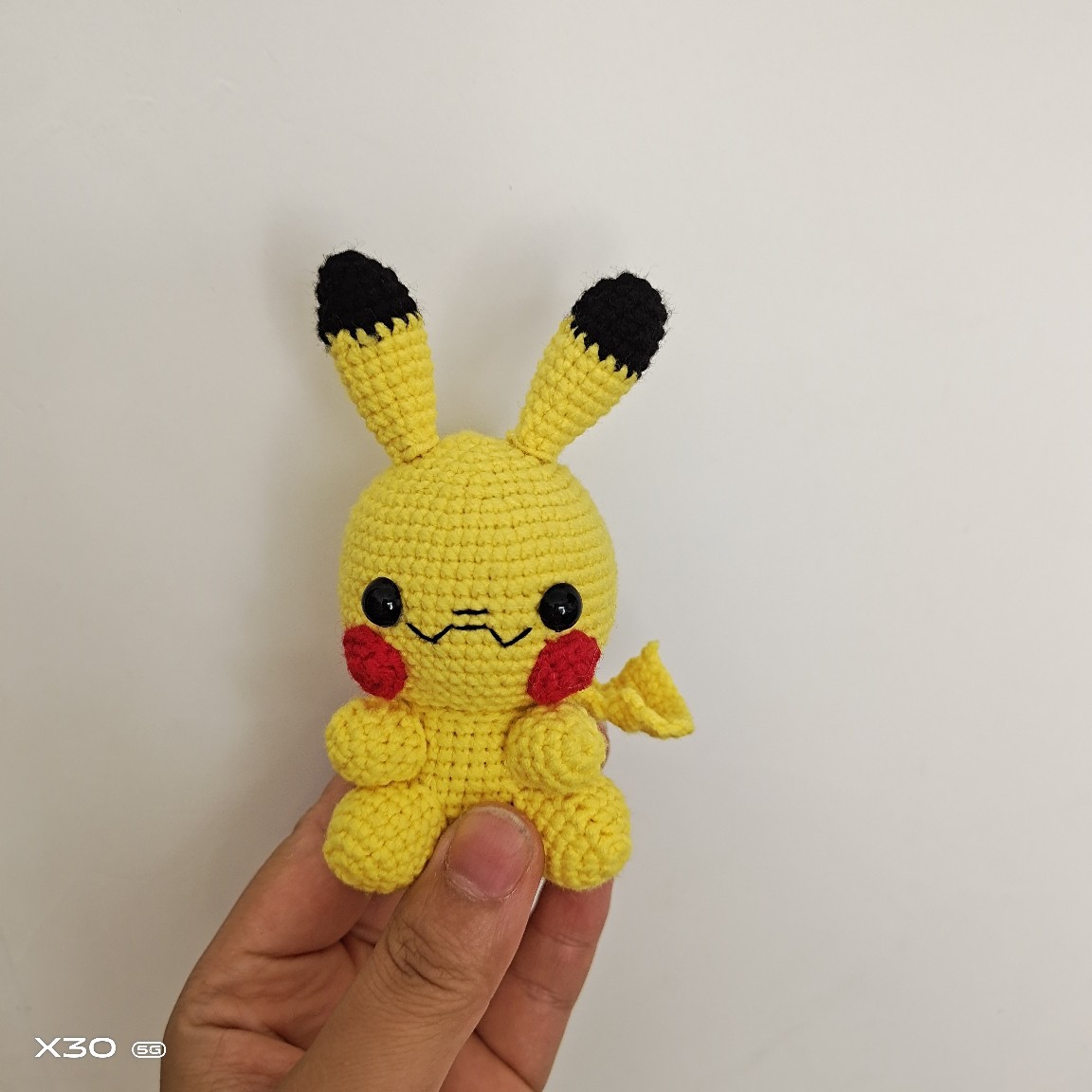 完成品の手編み毛糸人形ペンダント、手編みかぎ針編み人形、小さなピカチュウのぬいぐるみ