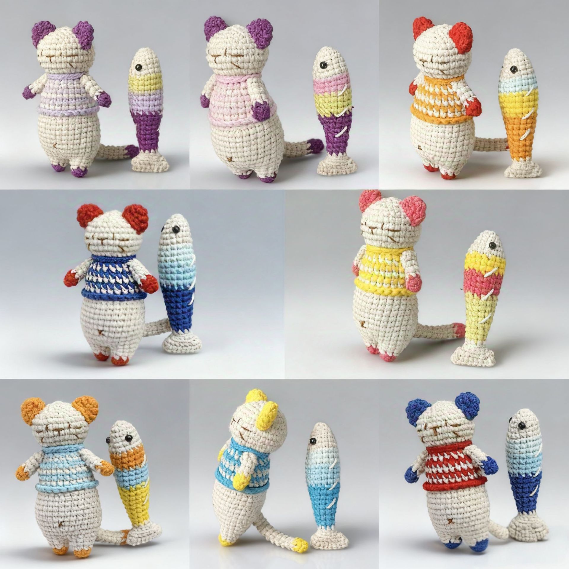 完成品手作りかぎ針編み人形完成品ストラップ手作り編み猫完成品ストラップ首をかしげ猫猫猫
