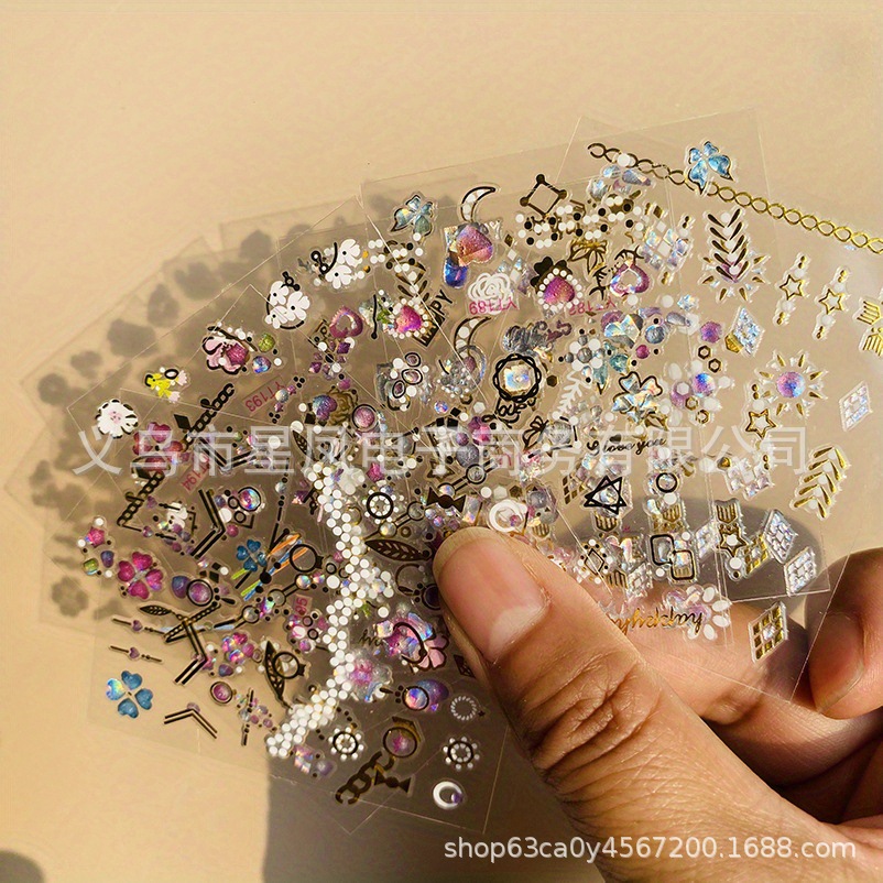 30枚オーロラネイルアートステッカーハート型星ネイルステッカー自己粘着性オーロラネイルステッカー