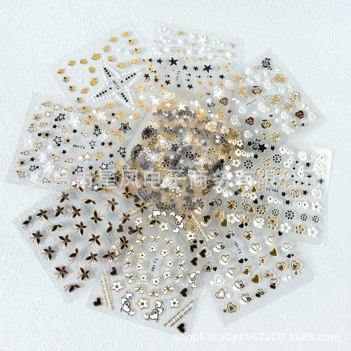 12 クロスボーダーネイルアートステッカーゴールドとシルバーのサンスターホットスタンピング粘着ネイルステッカー卸売スターバースト黒と白の粘着ステッカー