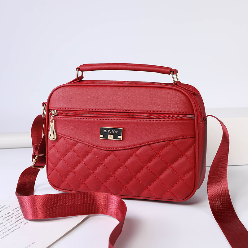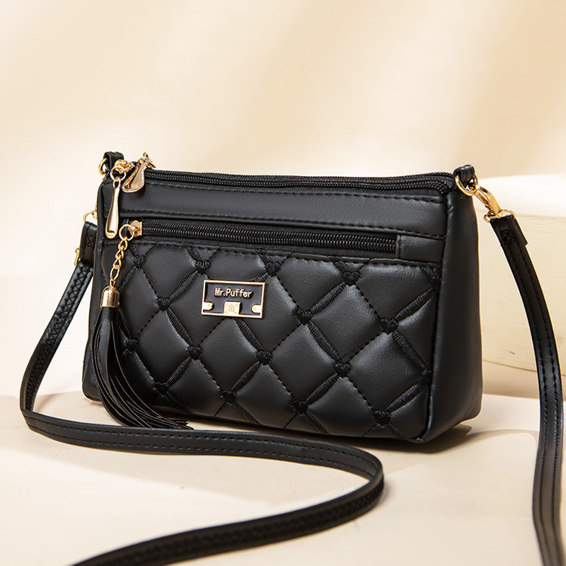 2025 新作人気レディースクロスボディバッグ、多層で実用的な刺繍入り菱形パターンショルダーバッグ、中年ママ向けレディースバッグ