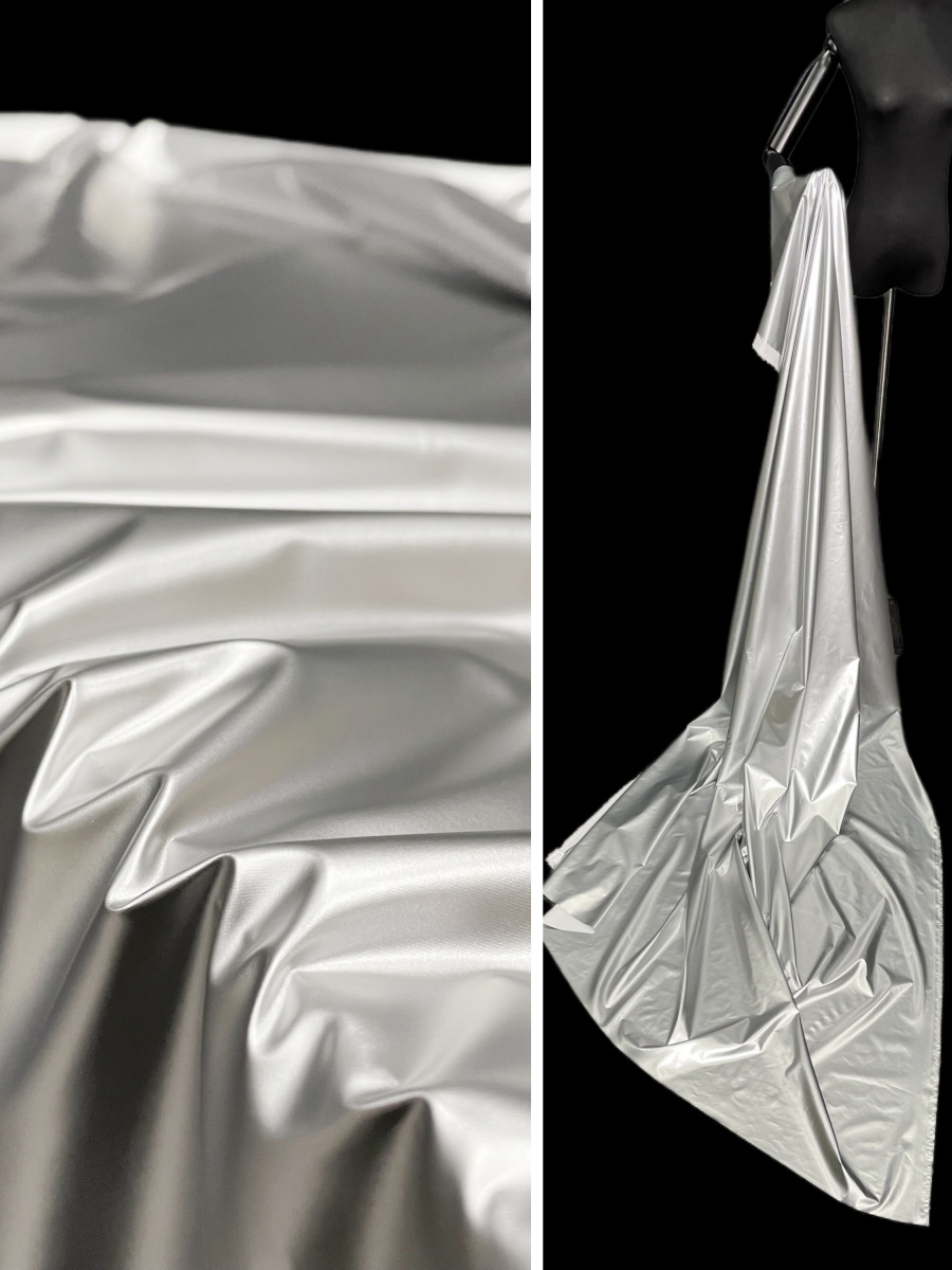 超高輝度超滑らかなミラー光沢のあるシルバーの柔らかい高弾性光沢のあるレザー模造革の衣類生地