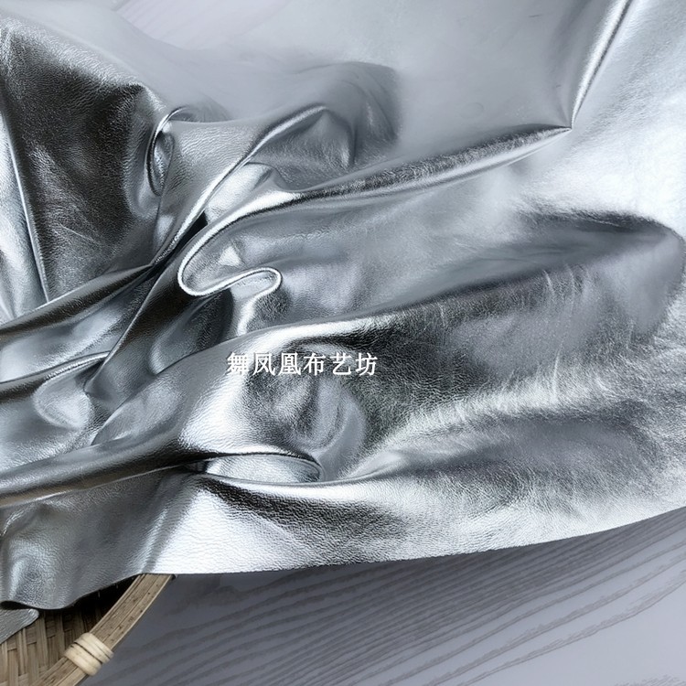 マットシルバーレザー生地四面ストレッチ模造革スウェットスーツレザーパンツラムスキン人工皮革 pu 衣類生地