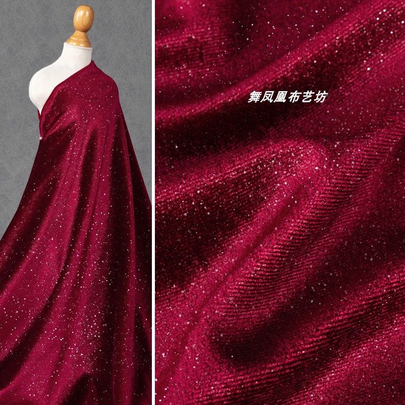 バラの赤い満天星フラッシュ韓国のベルベット生地の高級ドレスワンピースの柔らかい弾力生地