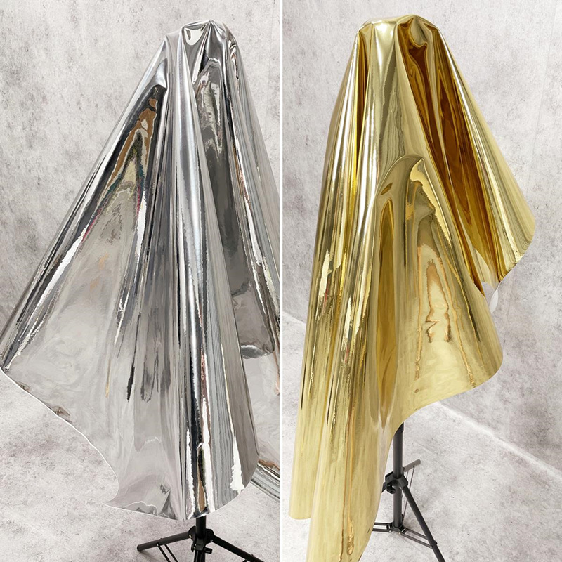 厚い超明るいシルバー鏡面tpu鏡革生地反射防水金属光沢質感生地