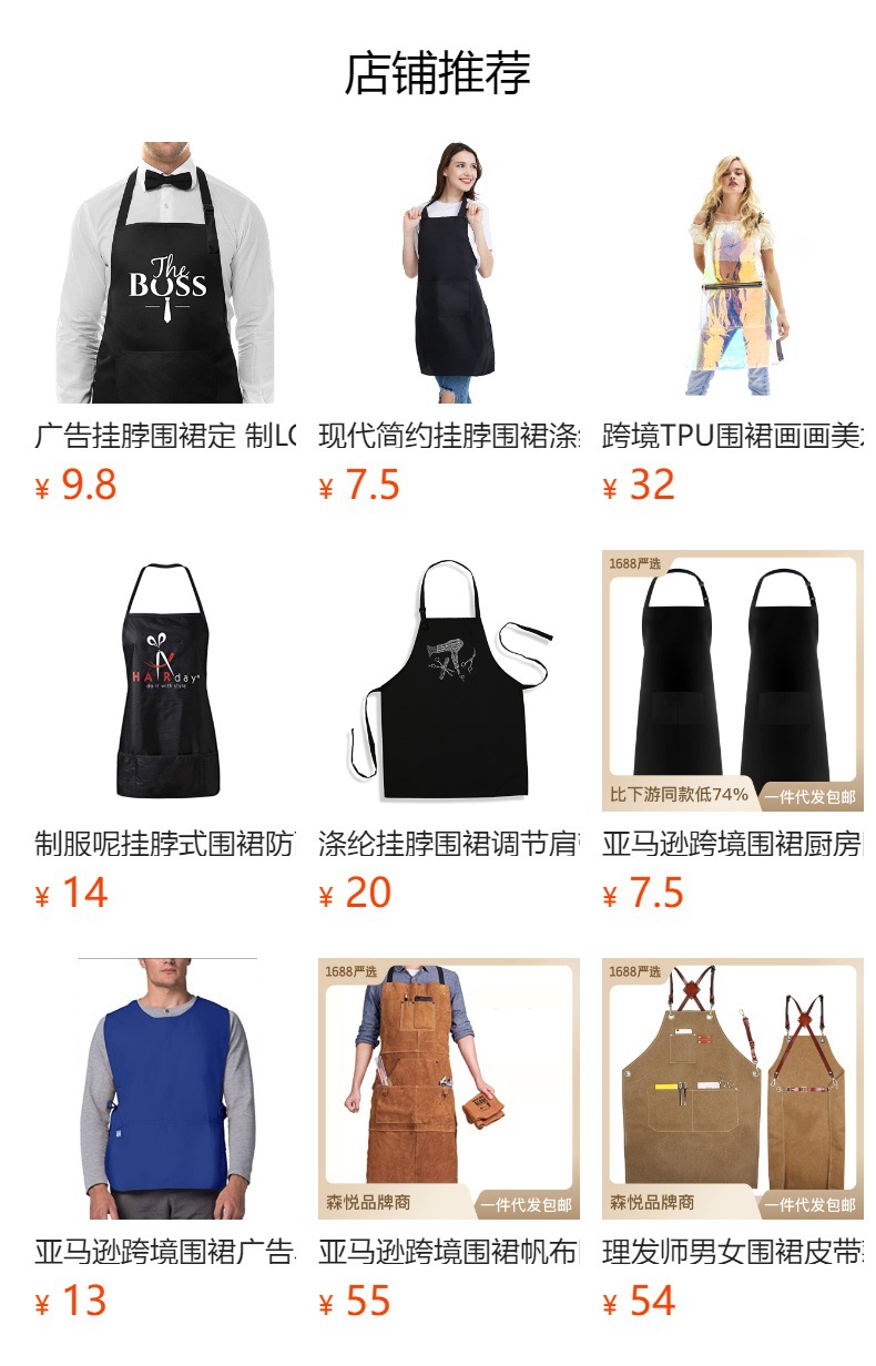 アマゾンクロスボーダーエプロンキッチンエプロンカフェバーベキュー花芸作業服首エプロンカスタムロゴ