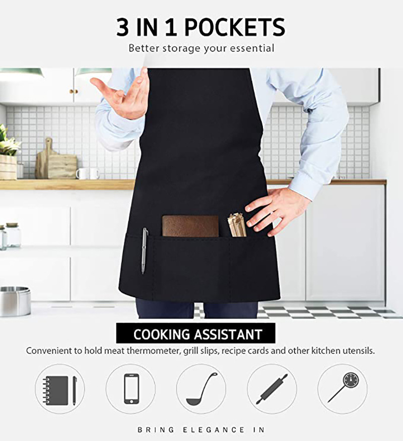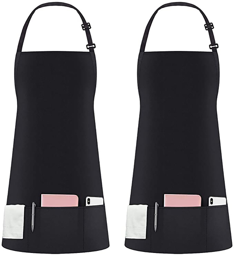 アマゾンクロスボーダー首掛け調節可能なエプロン防水防油キッチン黒ポリエステル飲食作業エプロンカスタマイズ