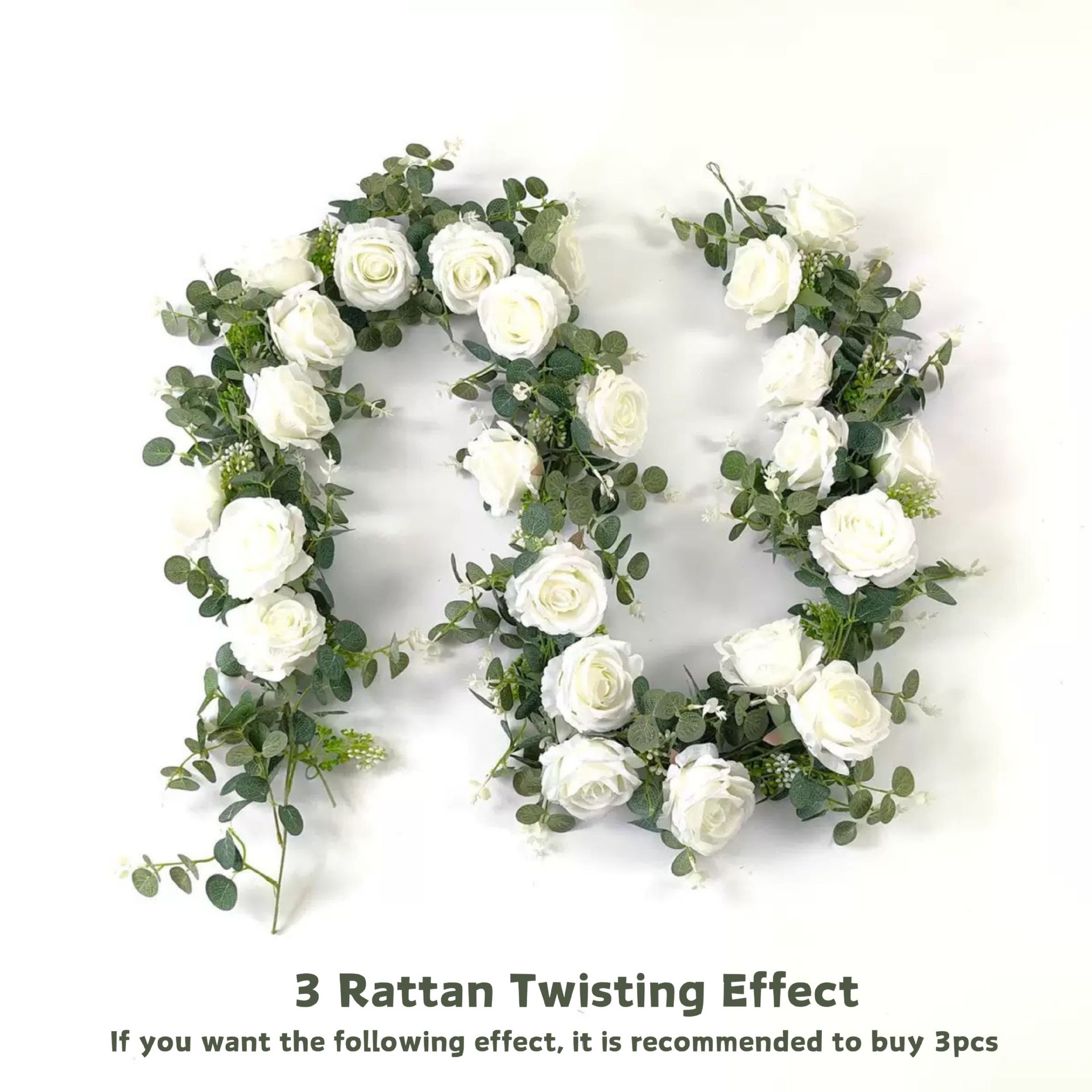 アマゾンは国境を越えて同じタイプのユリの葉のバラの花の藤の家のシミュレーションの花のバラのつるの結婚式の装飾品を作ります。