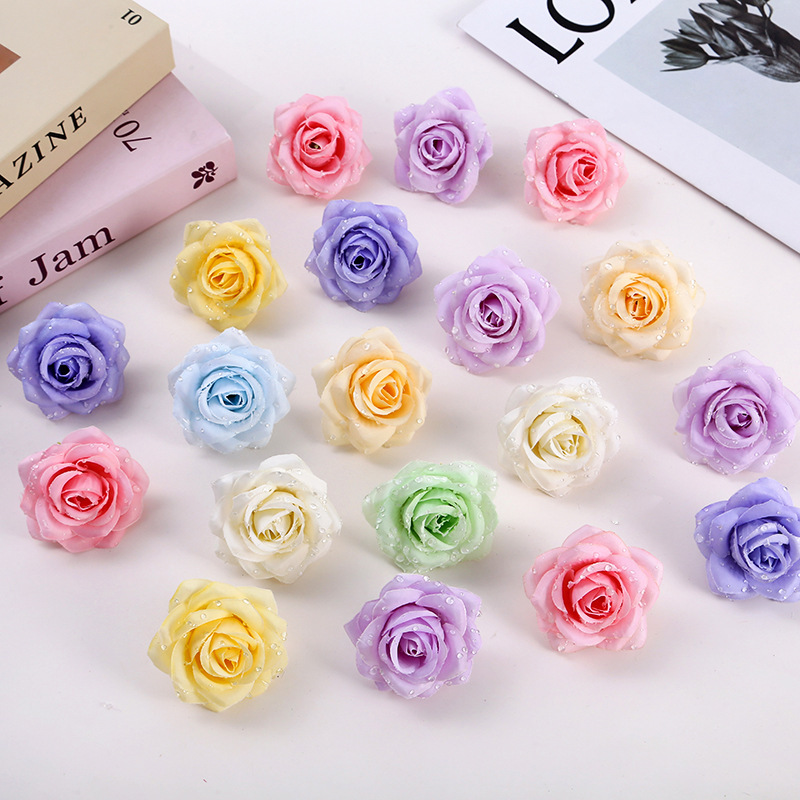 圆边露珠玫瑰6厘米水滴仿真花DIY手腕花玫瑰花头头饰拍照装饰假花