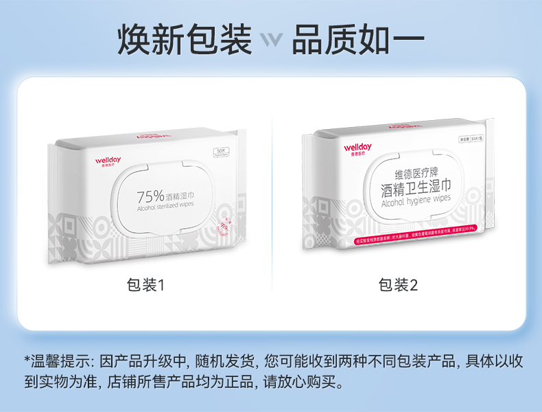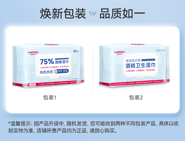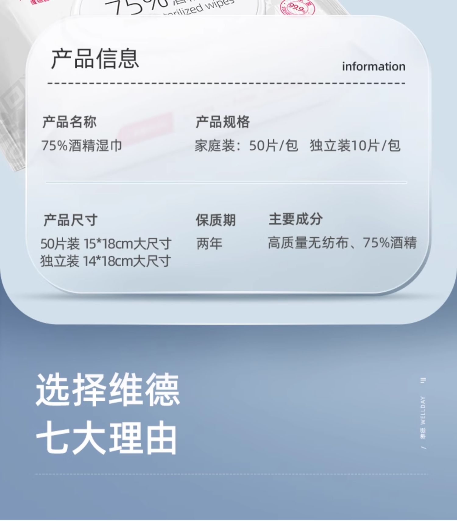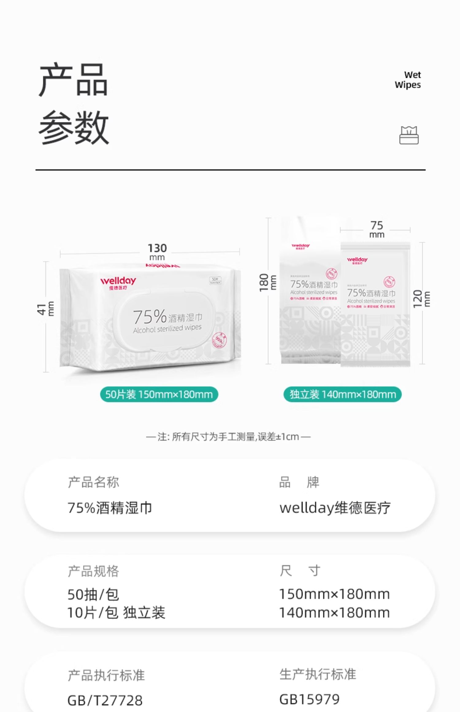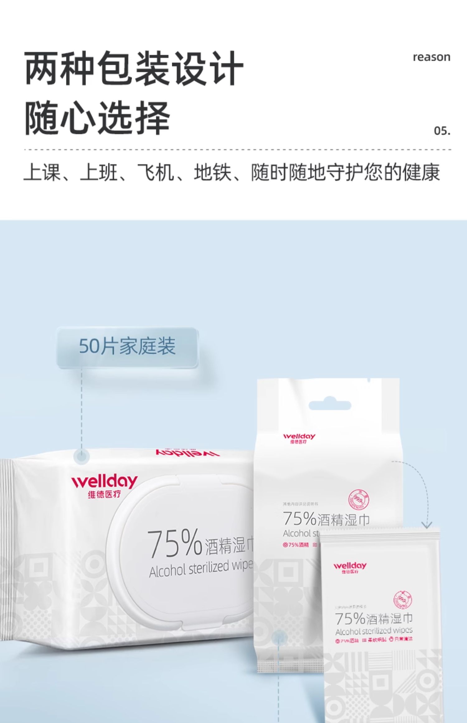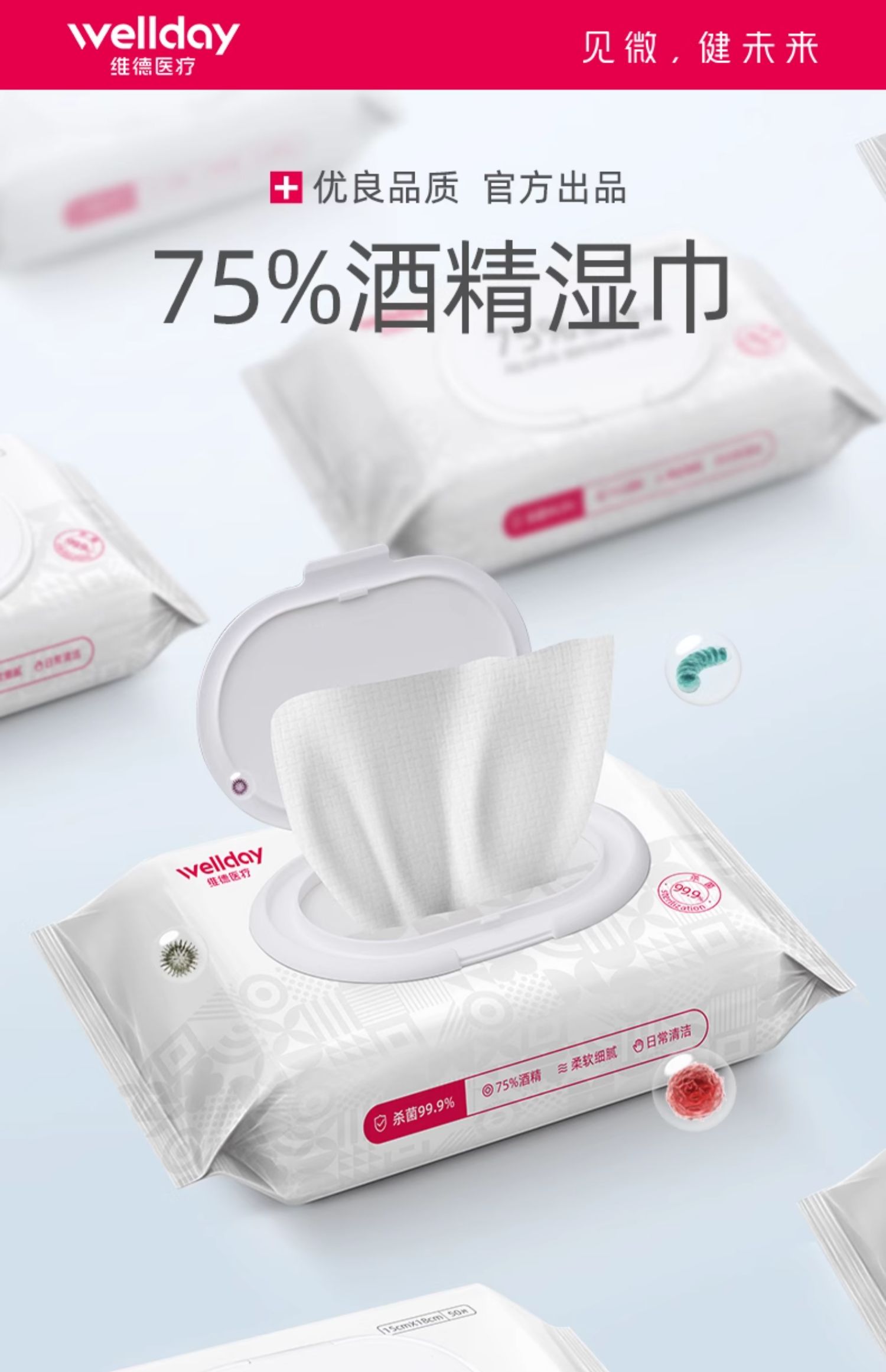 维德医疗75%度酒精湿巾湿纸巾家用儿童开学办公卫生杀菌消毒80抽
