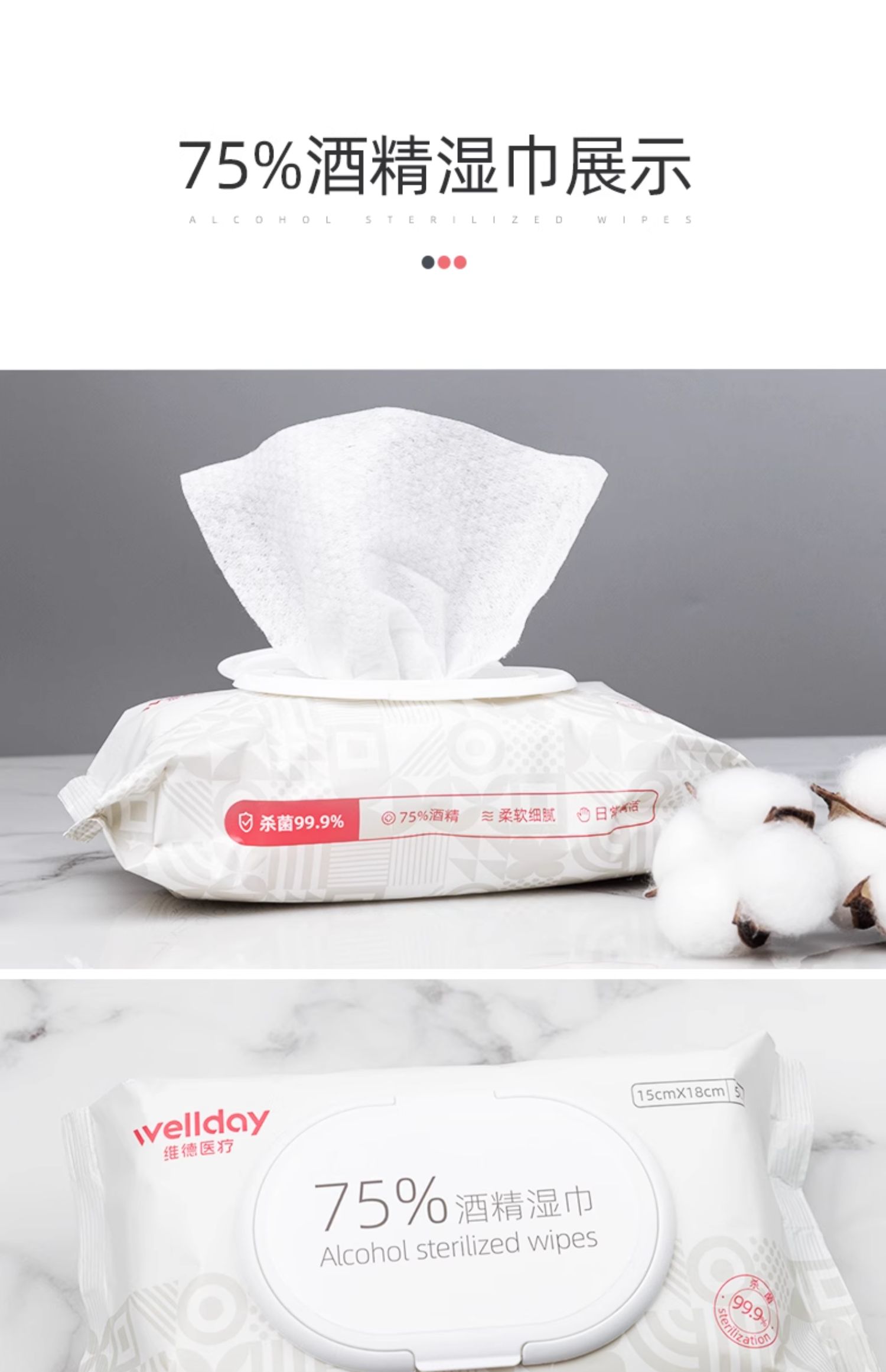 ウィダー75% アルコールウェットティッシュメーカー卸売り医療用殺菌消毒ウェットティッシュ50枚/80抽出バッグ独立包装