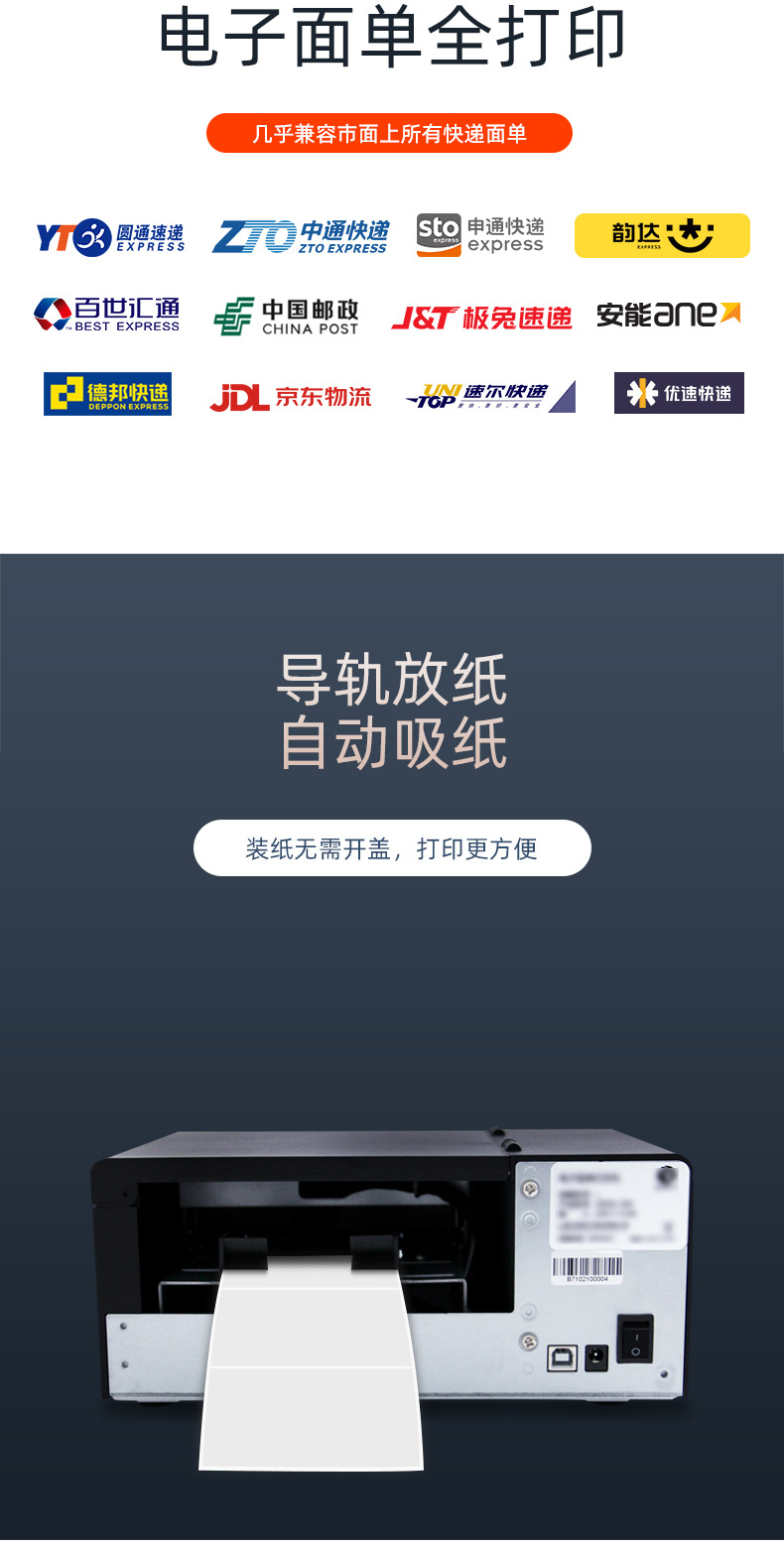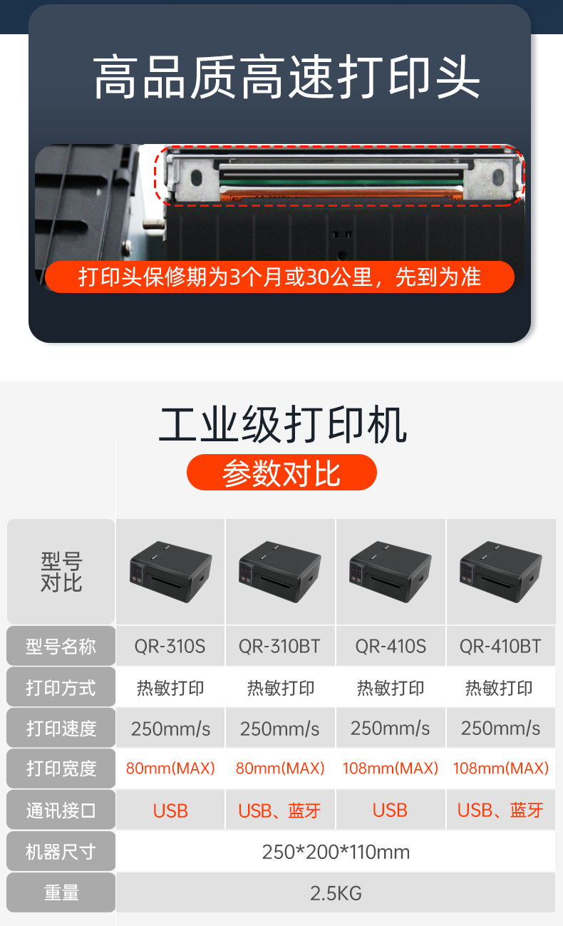 启鋭QR410S工業級高速300mmバーコード宅配便面単プリンタe郵便宝打単機QR310S