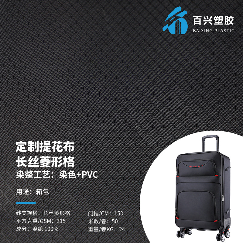 现货黑色提花布长丝菱形格箱包布折叠椅遮阳棚面料
