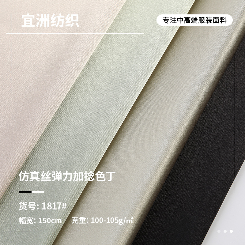 模擬シルクストレッチツイストサテン、非常に柔らかく、しわになりにくく、通気性があり、肌に優しい、ドレス、チャイナドレス、漢服の生地に適しています。