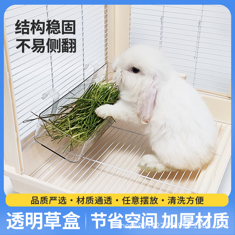 ウサギの壁掛け式の透明な食器箱の草の棚は横転を防止します。