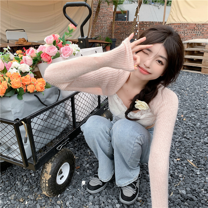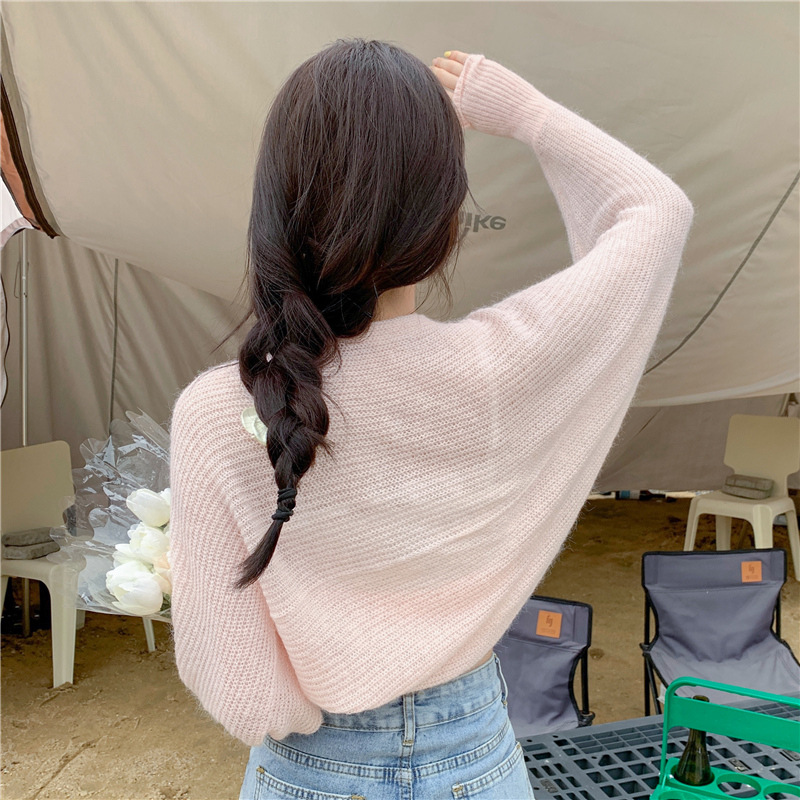 森系の怠惰な風の短いセーターの女性はゆったりしています。