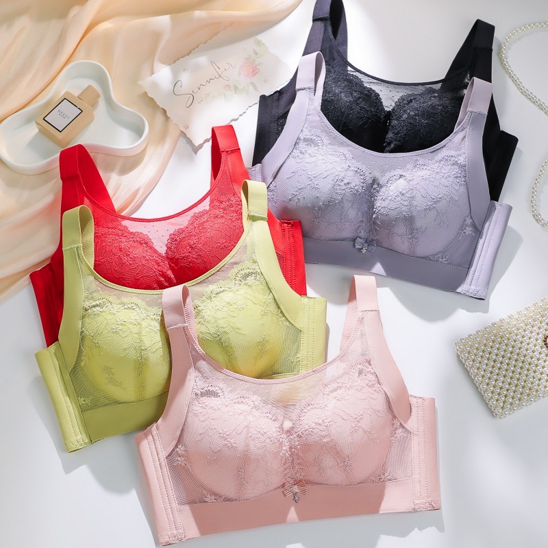 Cdカップの薄いタイプの胸を塗る大きいサイズのレースの下着の大きい胸は小さくて、スチールリングがなくて、光を防ぐことができます。