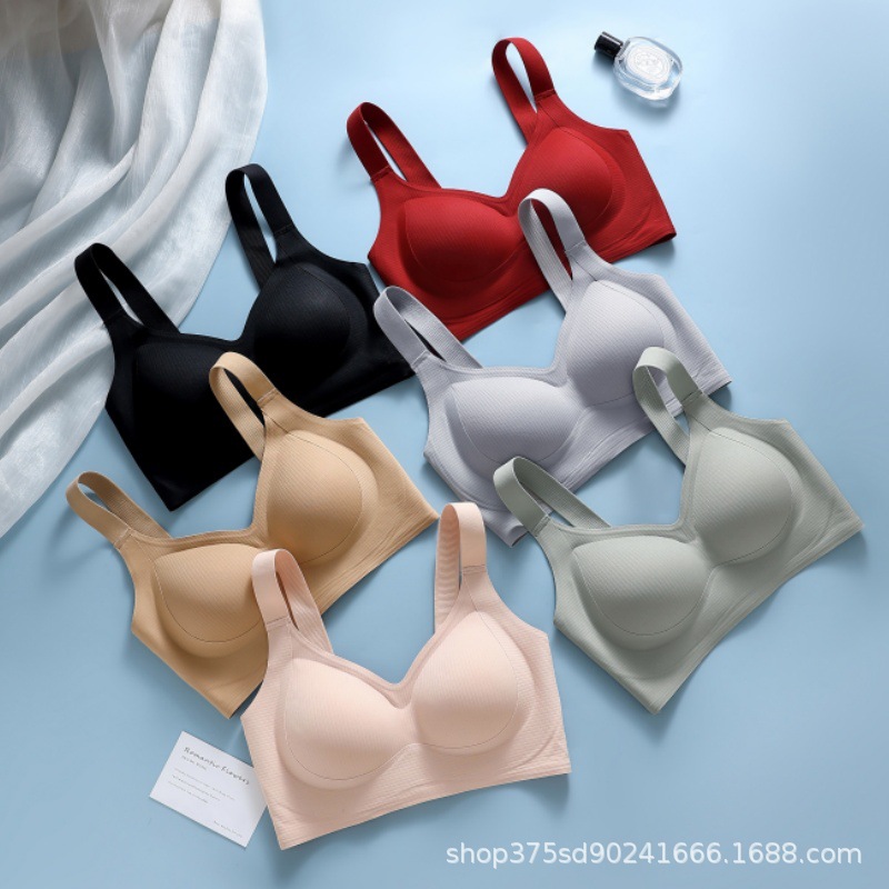 228背心式无痕拼接蕾丝柔光绸缎感果冻内衣无排扣聚拢舒适文胸罩