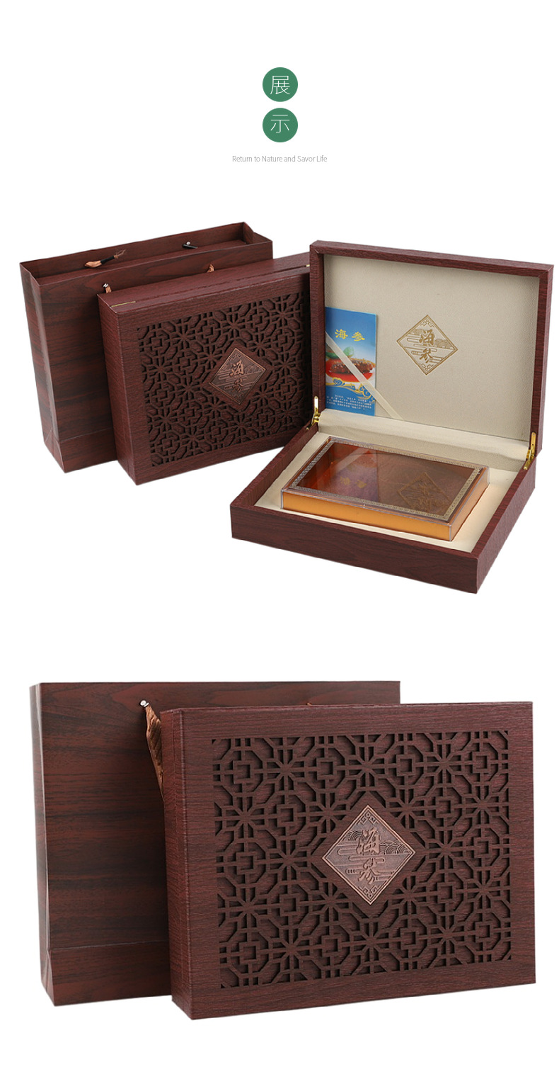 新しいナマコ包装木箱 0.5kg パック半斤彫刻窓ナマコ木箱ライトドライナマコギフト空箱