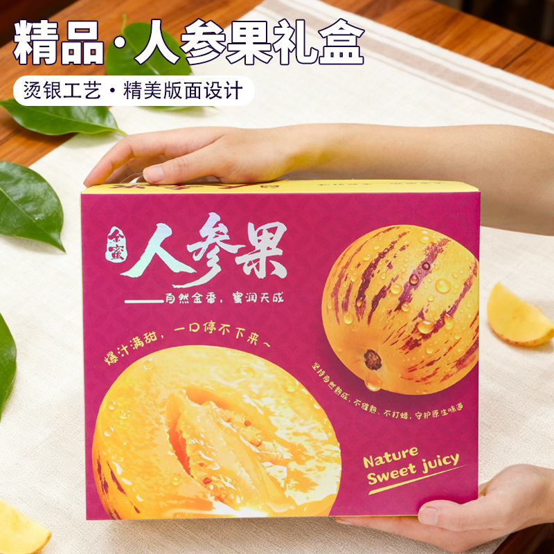 精品人参果礼盒高档烫银带手提袋三层瓦楞天地盖人参果包装盒批发
