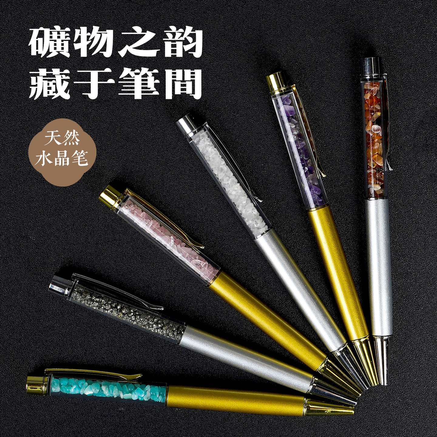 商务水晶笔平顶天然水晶原石碎石圆珠笔矿石笔转动签字笔高颜值笔