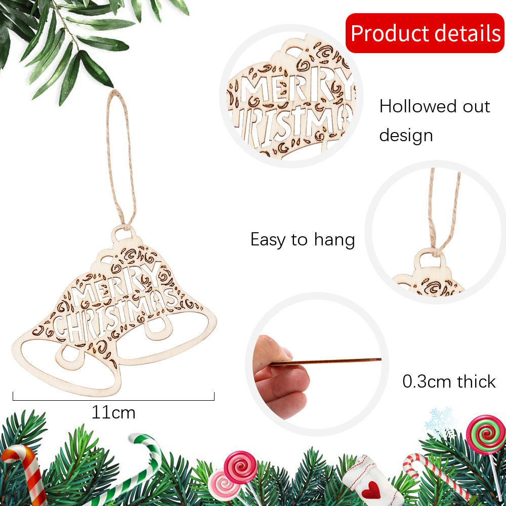 新しいクリスマスの装飾品の木製の透かし彫りのペンダントのクリスマスツリーのdiyは鈴のクリスマスのボールの木片の小さい掛け札を飾ります。