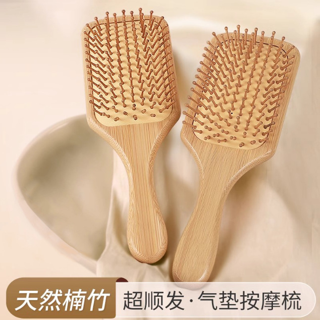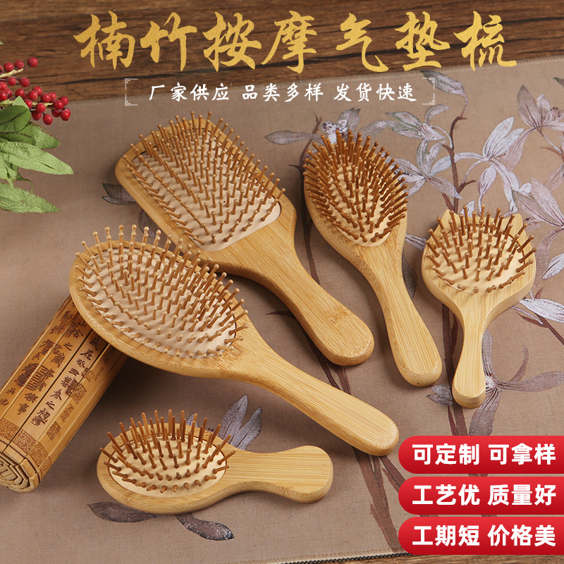 4》椭圆气垫楠竹梳:单个opp;单个约87.5克;10个一个内盒;12个内盒一箱;箱规是:54x52x26;120个一个外箱: