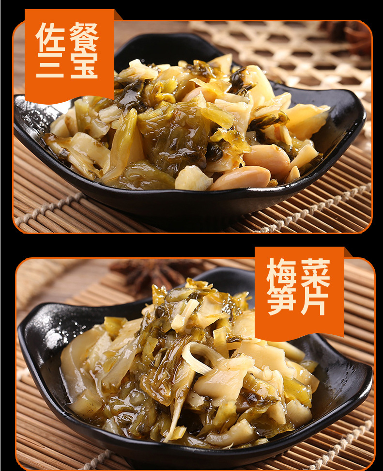 パッケージ仕様 佐食三宝80g,梅菜筍糸80g