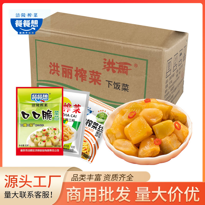 涪陵榨菜整箱批发渝橙麻油榨菜香脆下饭菜外卖配菜红景榨菜批发