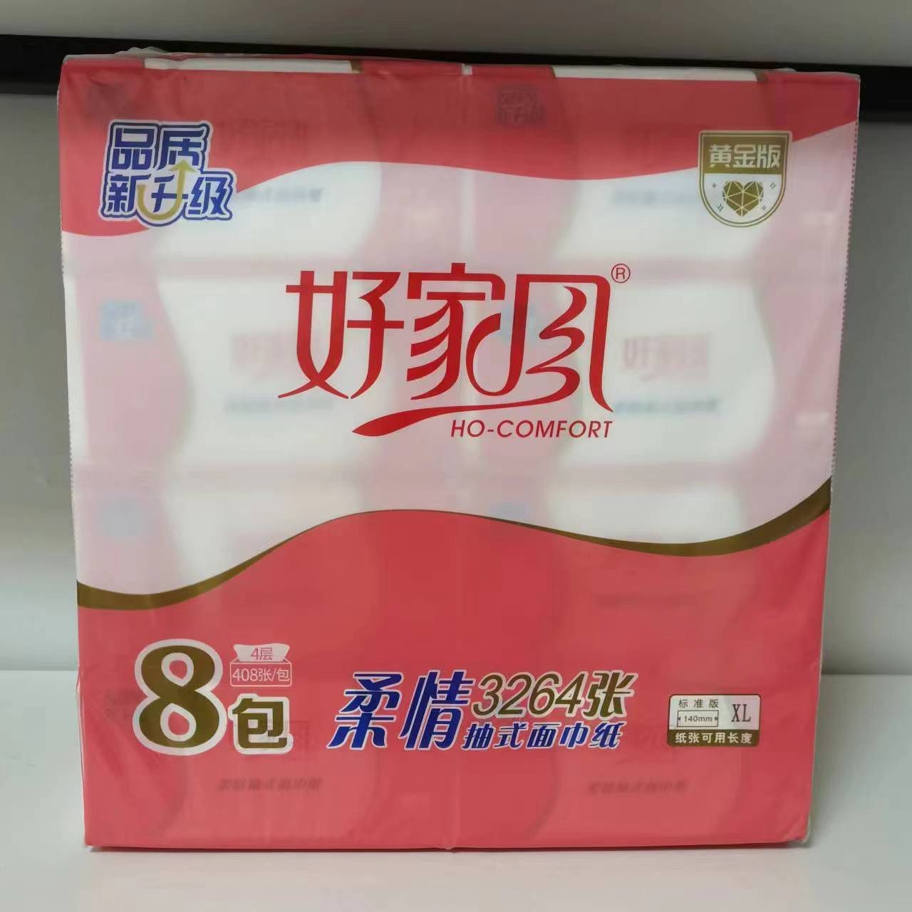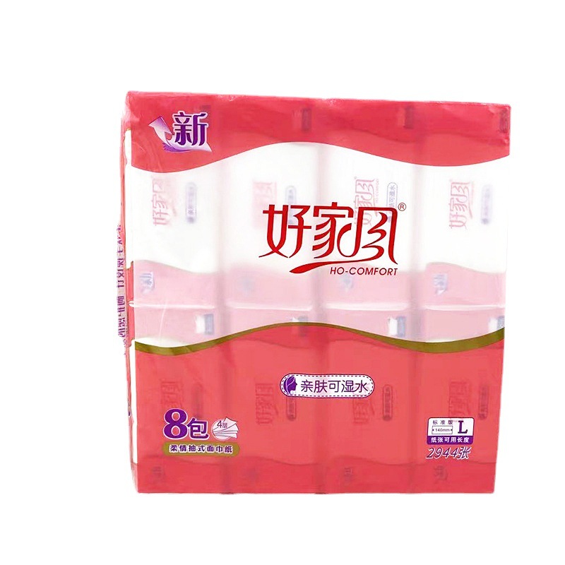厂家现货批发正品好家风抽纸8包装408张四层上品柔韧面巾纸抽取式