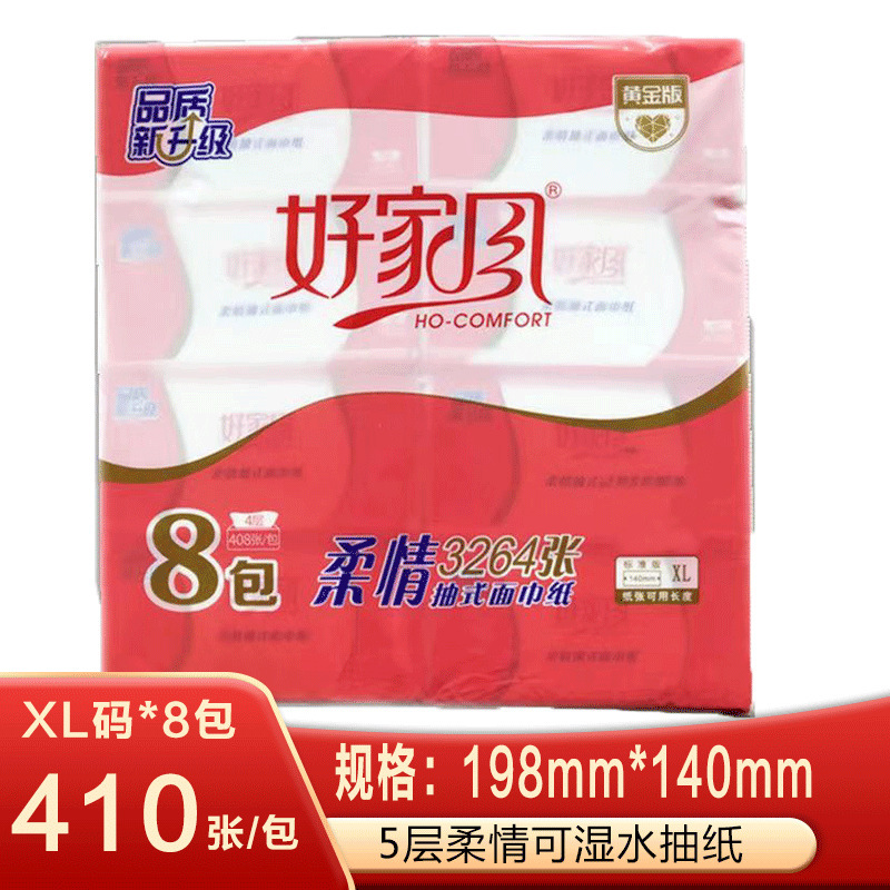 好家风抽纸系列5层XL码410张8包装家用卫生纸抽餐巾纸原生木浆