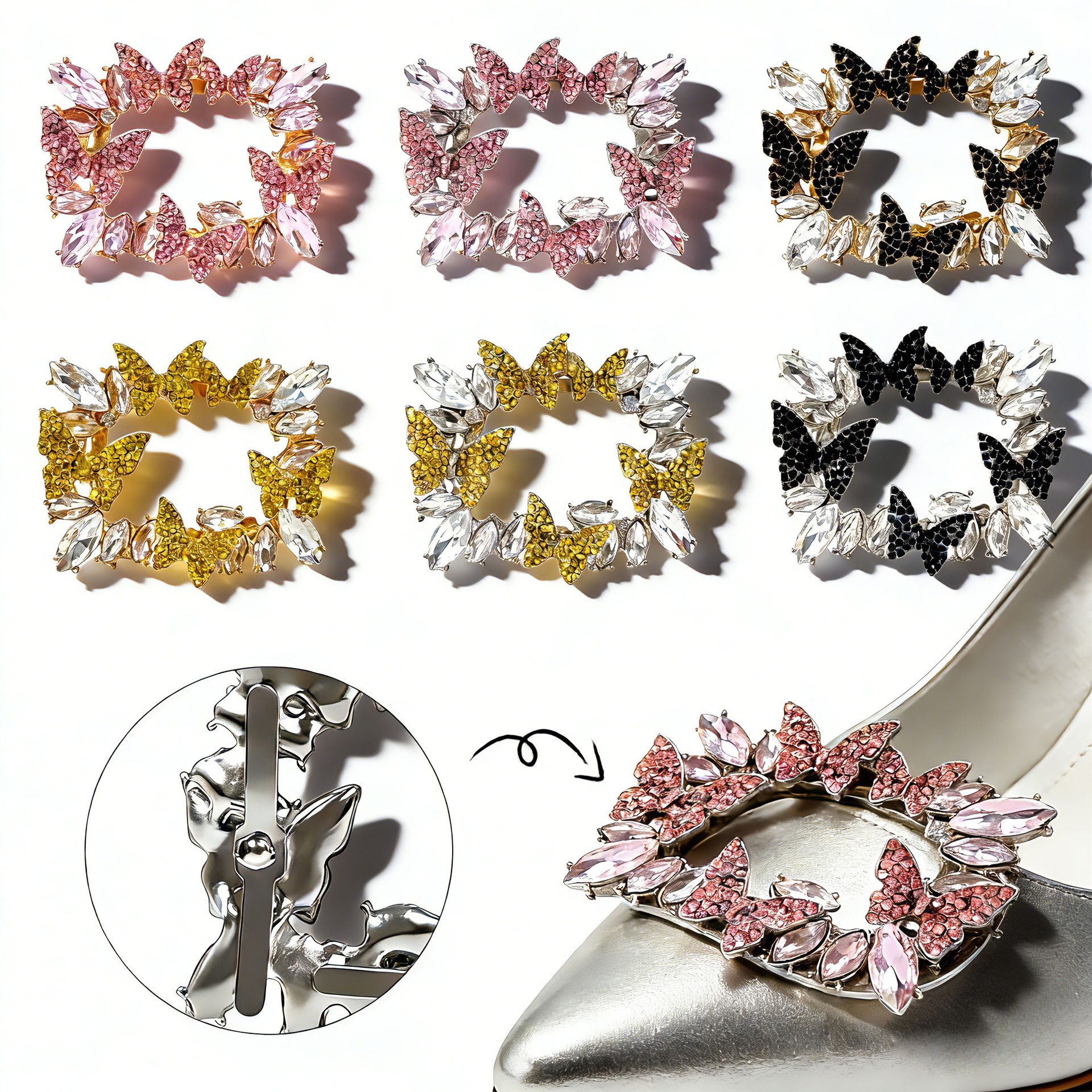 新款方形水钻成品鞋扣可拆卸高跟鞋鞋扣马眼钻装饰蝴蝶配饰插脚扣