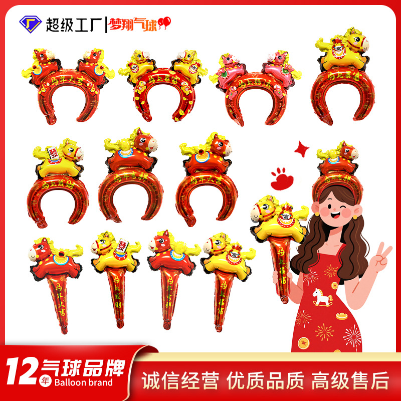 2026年春節馬年漫画風ハンドバルーン「馬上成功」型ヘアバンドバルーン、大晦日屋台バルーン